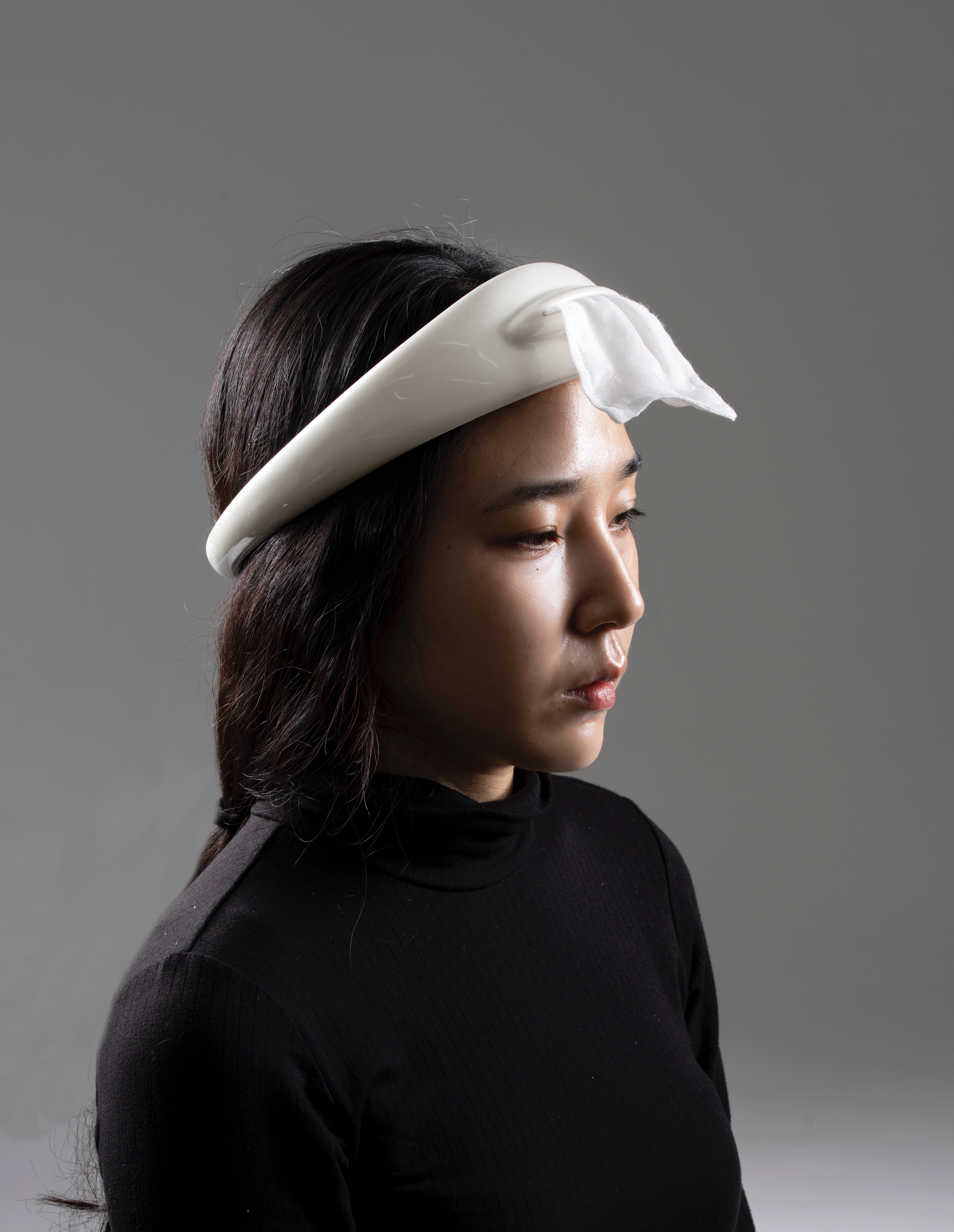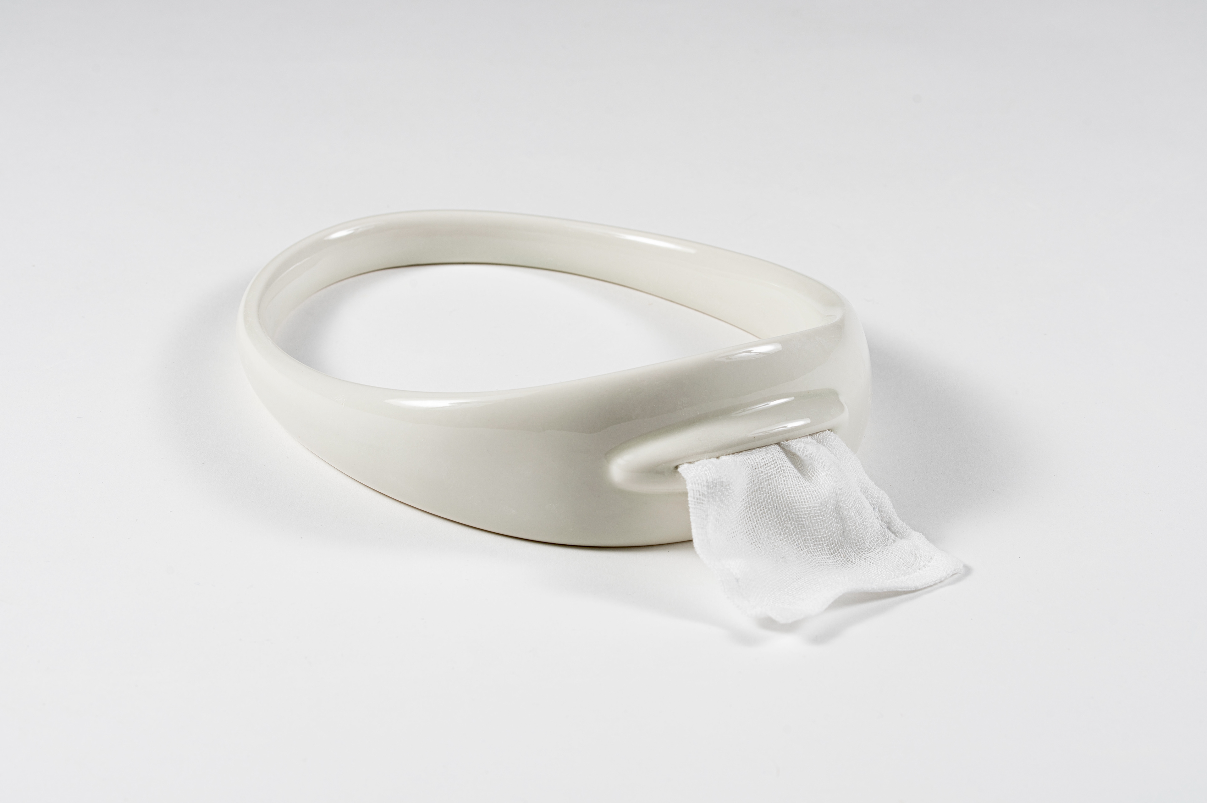 HHEW(Hankie Holder for Elegant Weepers), Porcelain, Gauze, 2021.